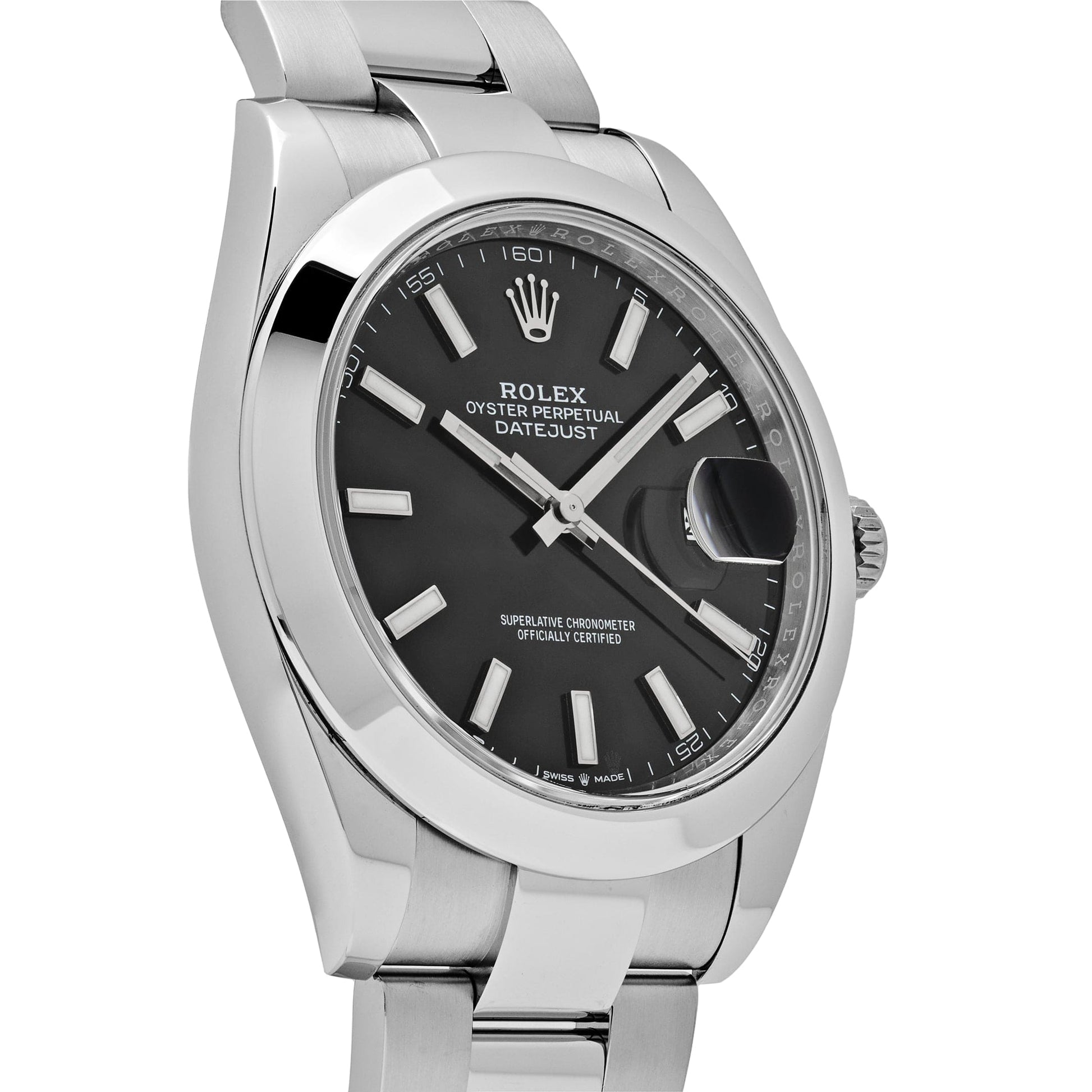 The 2025 Watch Datejust is crafted with a 41mm stainless steel case. highlighted with a classic steel smooth bezel. The black dial is protected by scratch-resistant Sapphire crystal and hosts luminous stick hour markers and a date display at 3 o'clock. On the wrist. the stainless steel oyster bracelet is a true beauty.
