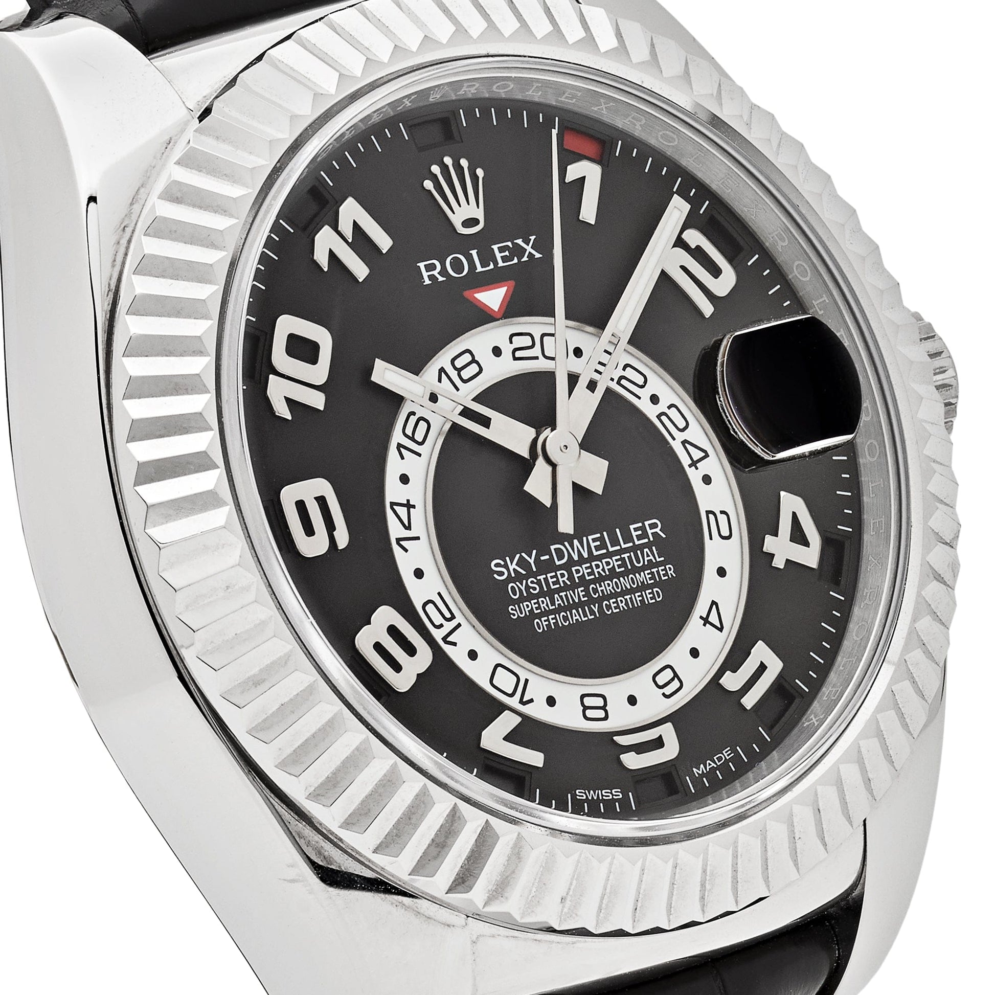 2025 Watch Sky-Dweller 326139 White Gold Black Dial Leather Strap