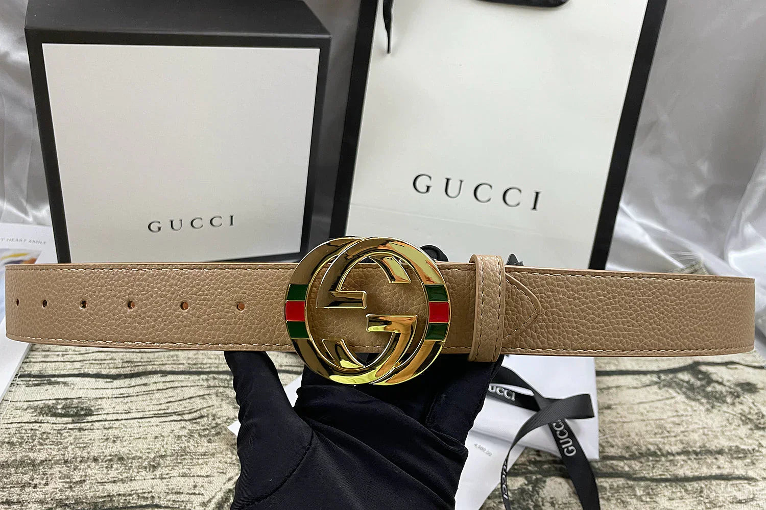 2025 4 Colors double-G three-layer lychee pattern double-sided belt